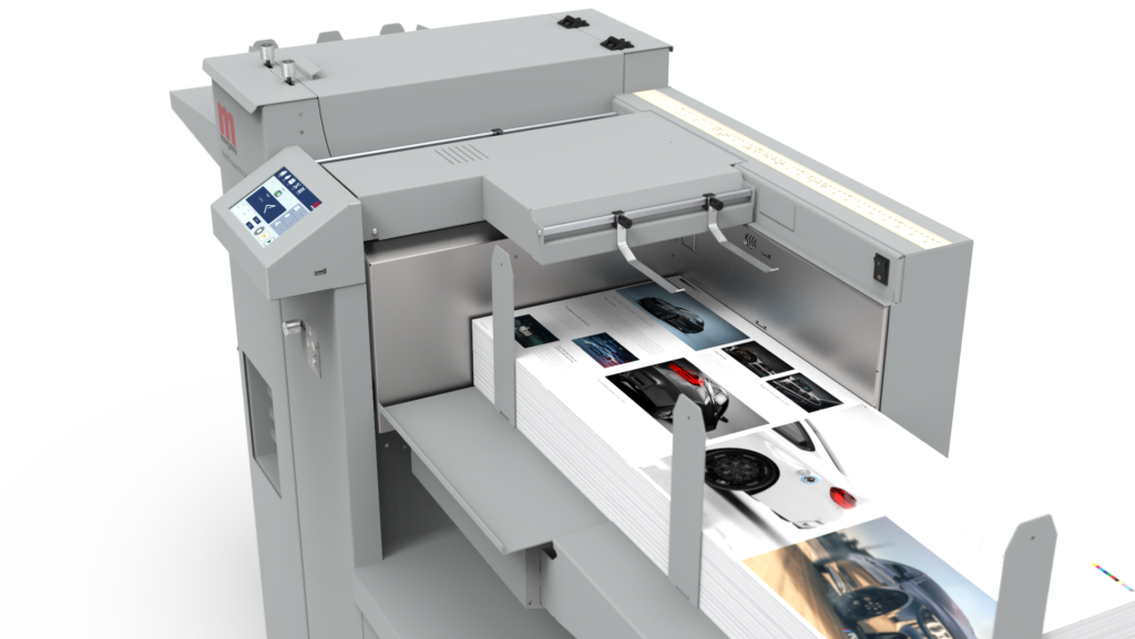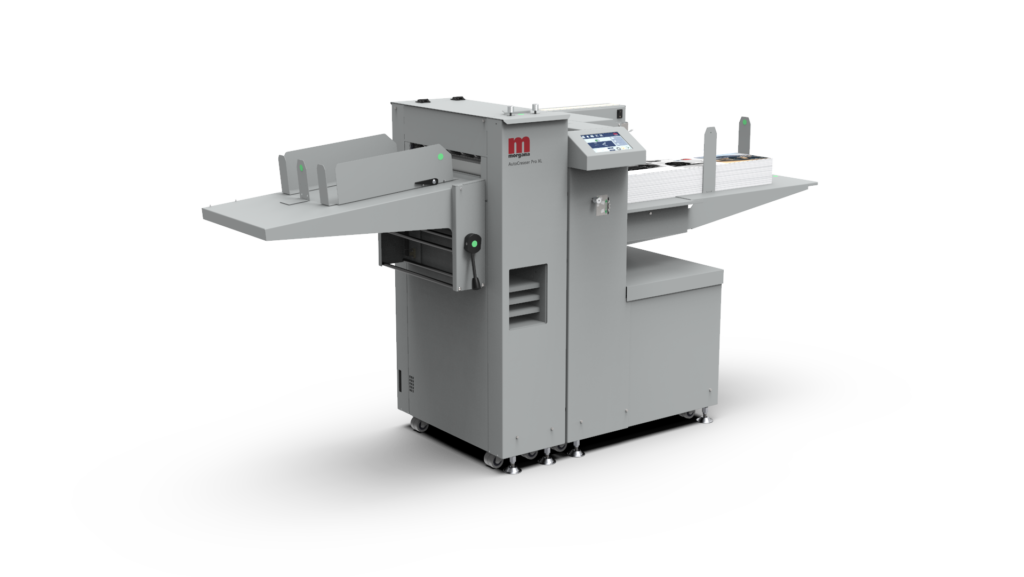 Pracując z maksymalną prędkością 8,500 arkuszy A4 na godzinę, bez utraty dokładności, jest to nasz najbardziej wydajny dotychczasowy układ bigujący. Nowa maszyna AutoCreaser Pro XL pobiera arkusze o formacie 385 mm x 1300 mm z rozszerzeniem stołu, co jest standardowym wyposażeniem tej nowej maszyny.